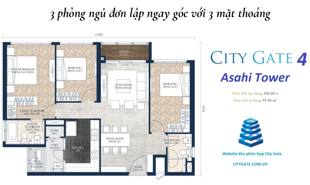 Mặt bằng Dự án Asahi Tower- City Gate 4 được bố trí áp dụng công nghệ xanh và thông minh vào trong kiến trúc tòa nhà, từng góc ngách tạo lên không gian sống vừa tiện nghi, vừa mang đến không khí trong lành, mát mẻ. Phá bỏ rào cản, căn hộ sang trọng, tiện nghi chỉ dành cho những người giàu có, căn hộ Asahi Tower- City Gate 4 mang đến khái niệm mới của dòng căn hộ sang trọng, đẳng cấp nhưng lại vừa với túi tiền lại đáp ứng được nhu cầu sống cao nhất của tất cả quý cư dân.